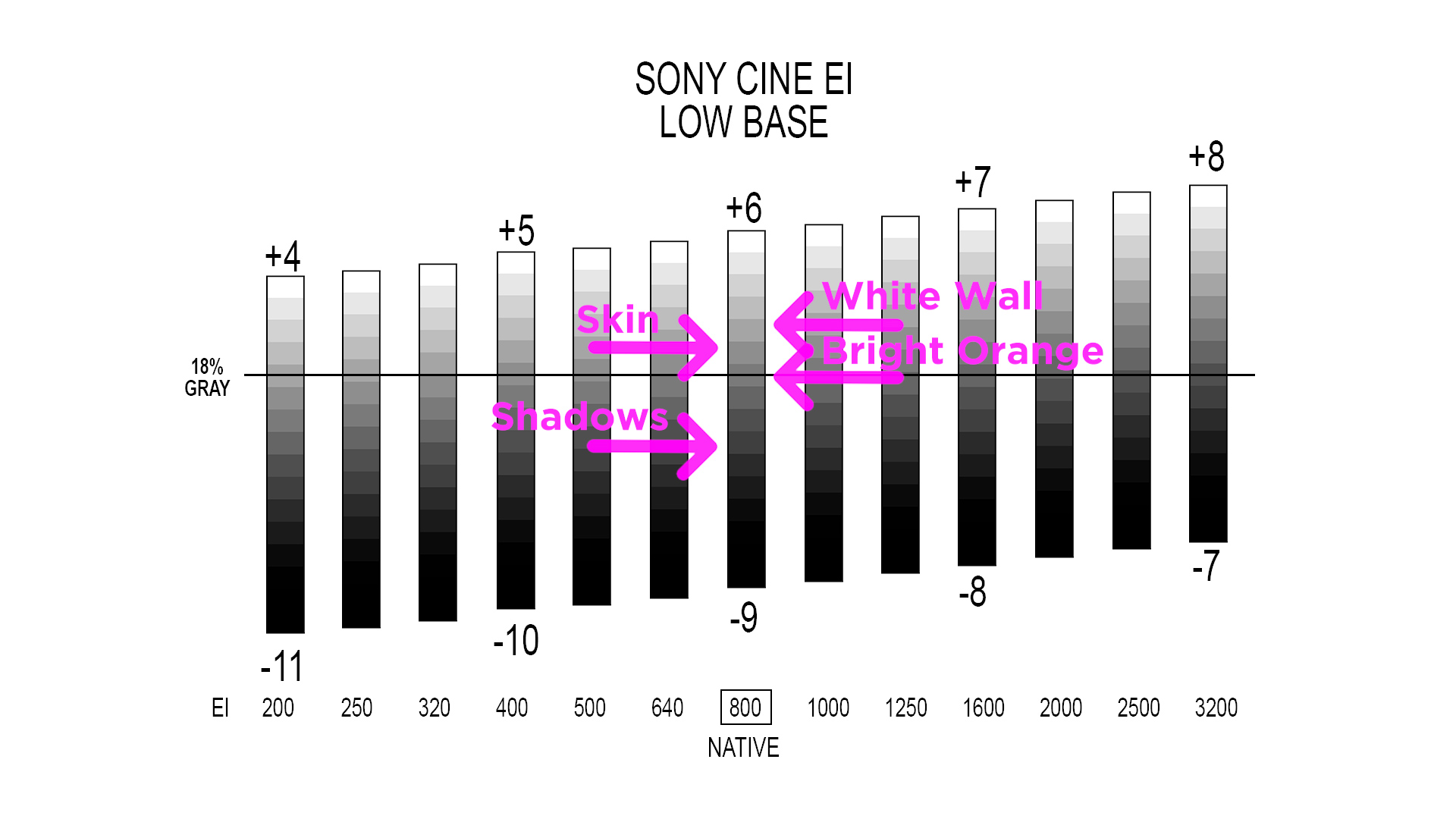 On cameras like the Sony FX6 or FX3 at base ISO, you’re working with a dynamic range that gives you multiple stops above and below middle gray. That means every part of your image has a position.